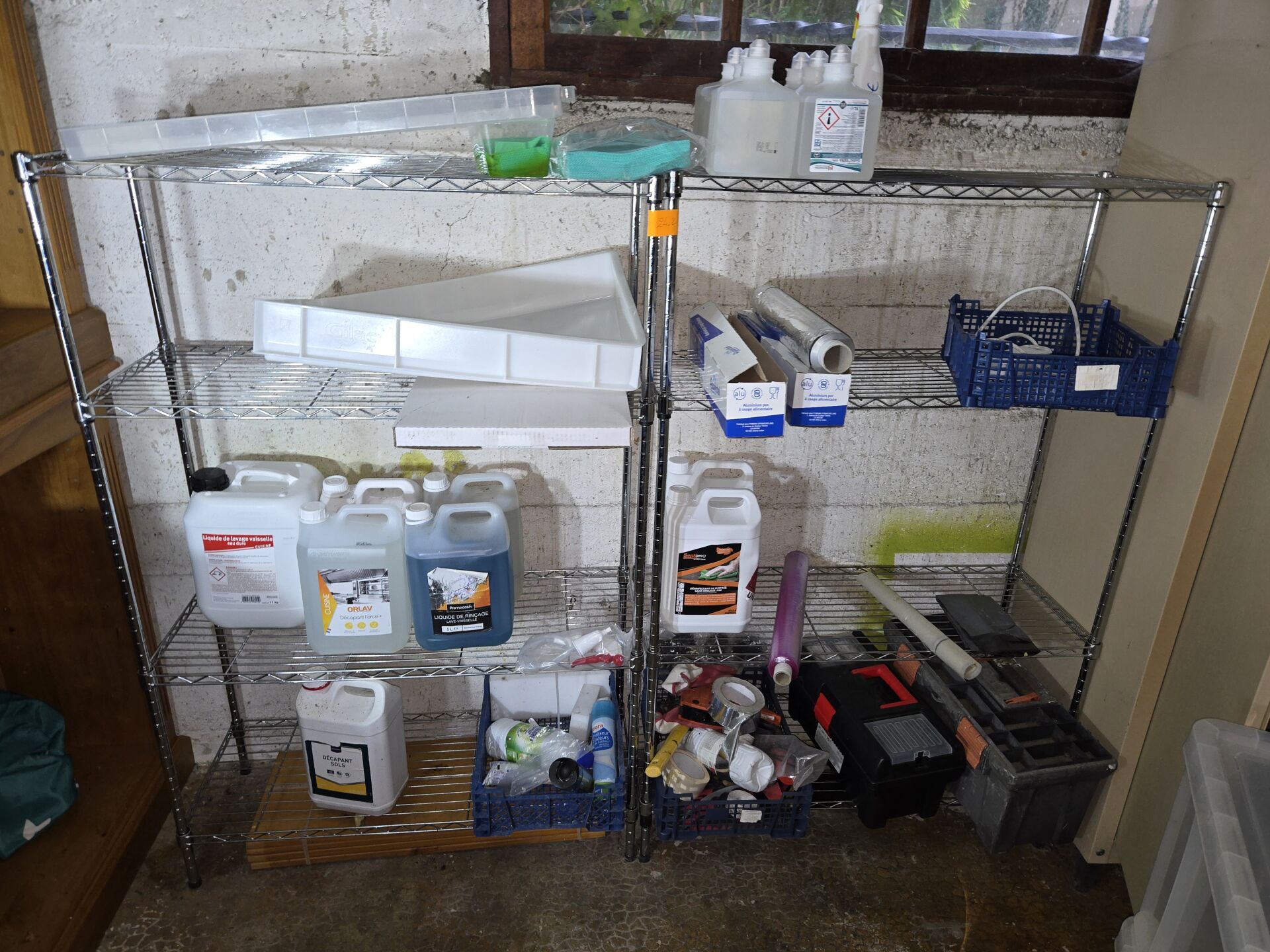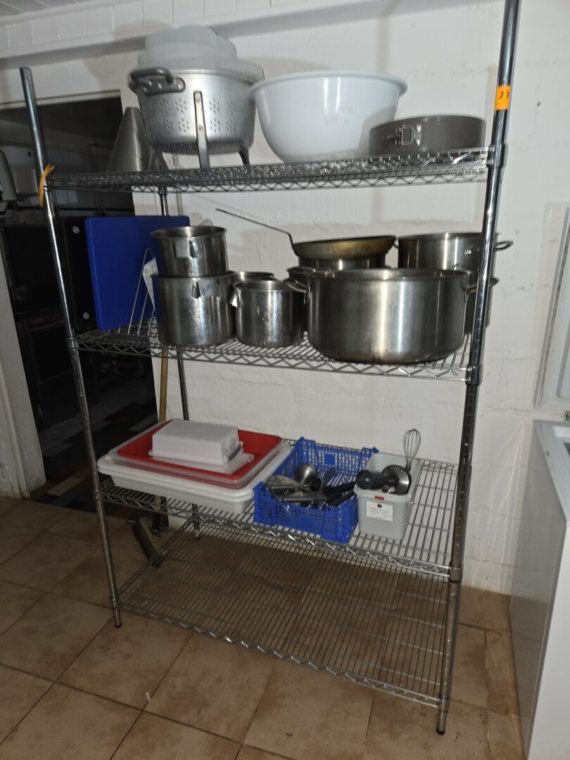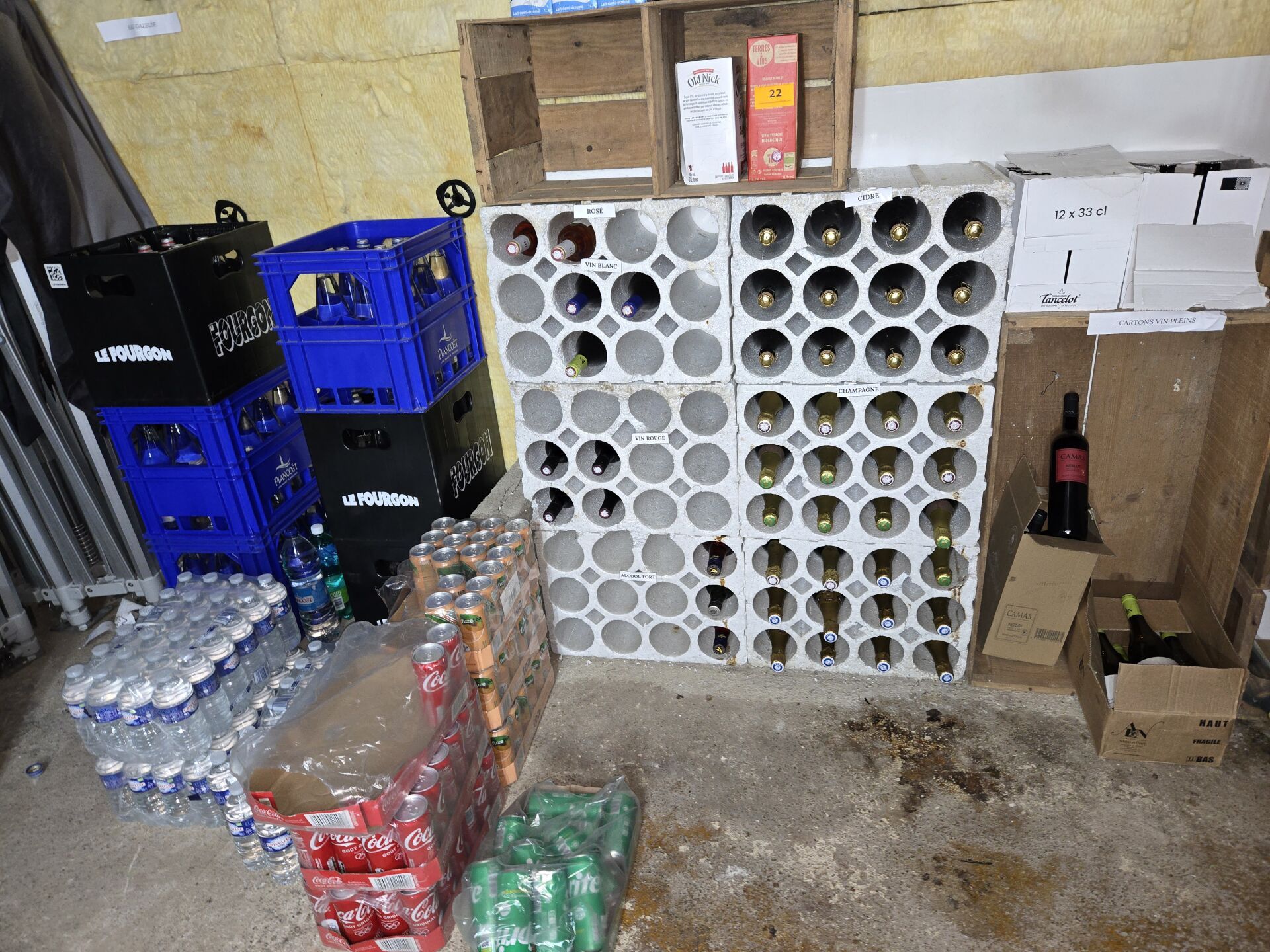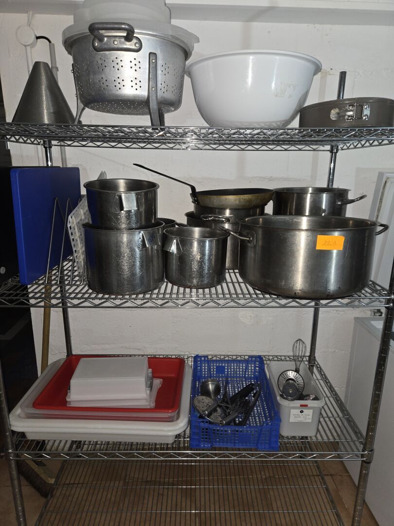 Cellule de refroidissement, Armoires réfrigérées dont POLAR, Chambre froide DIAMOND, Plonge inox, Lave-vaisselle GASTRO, Stock de vins et canettes de soda...